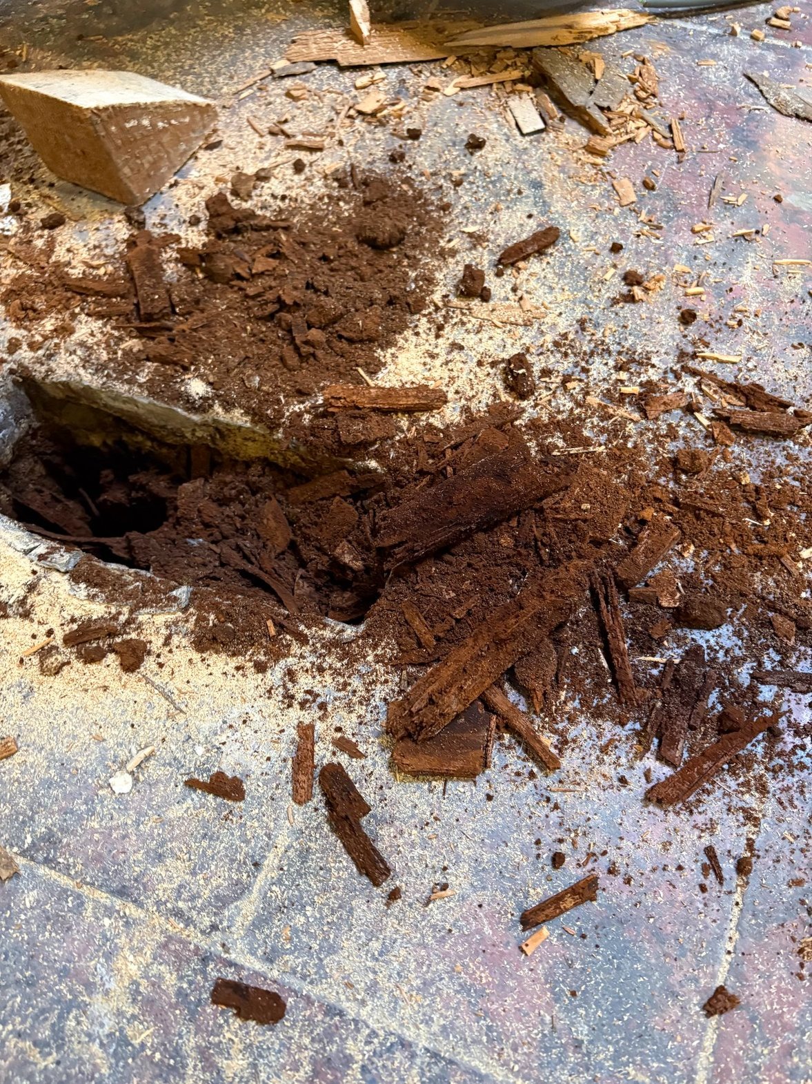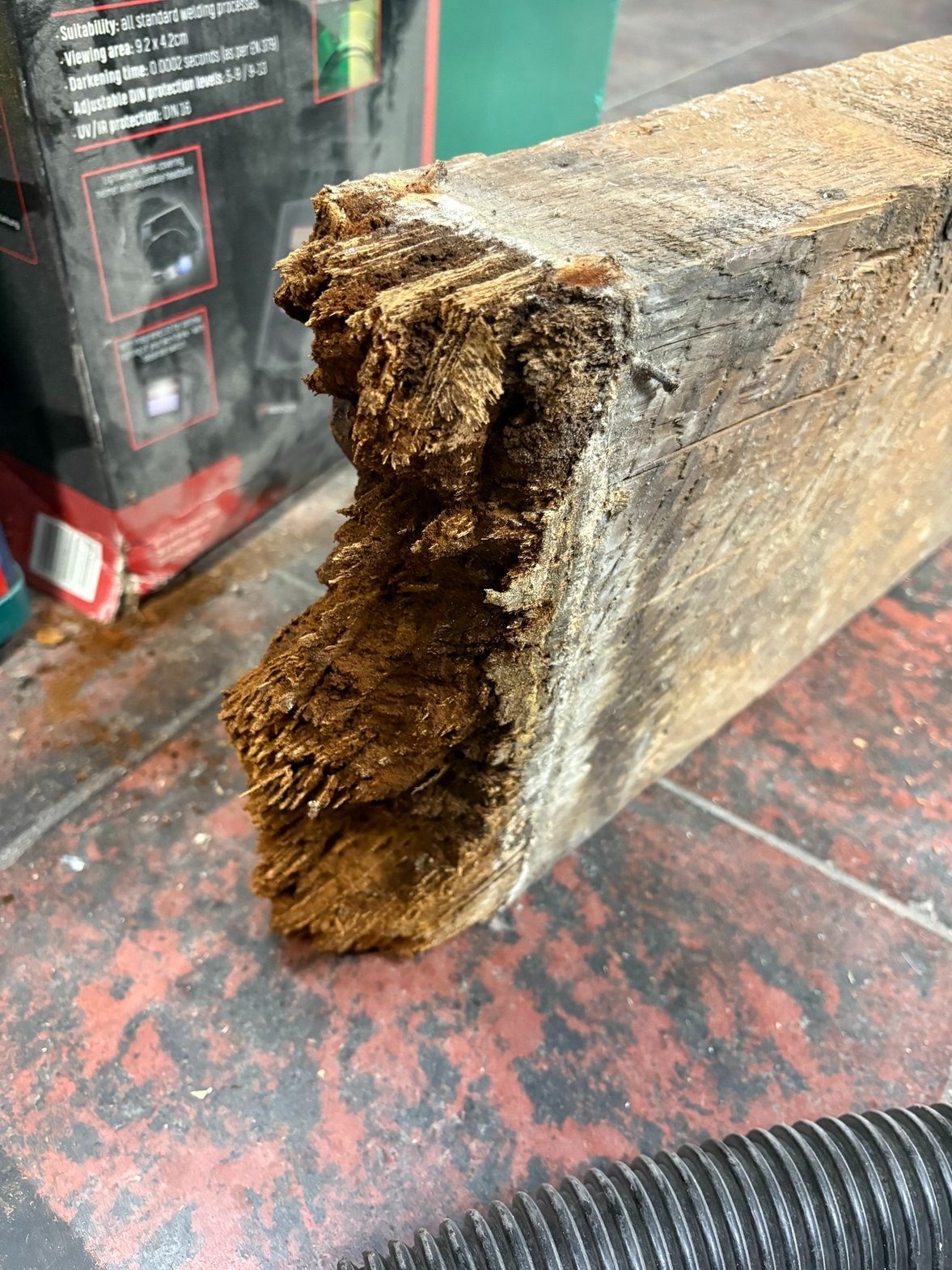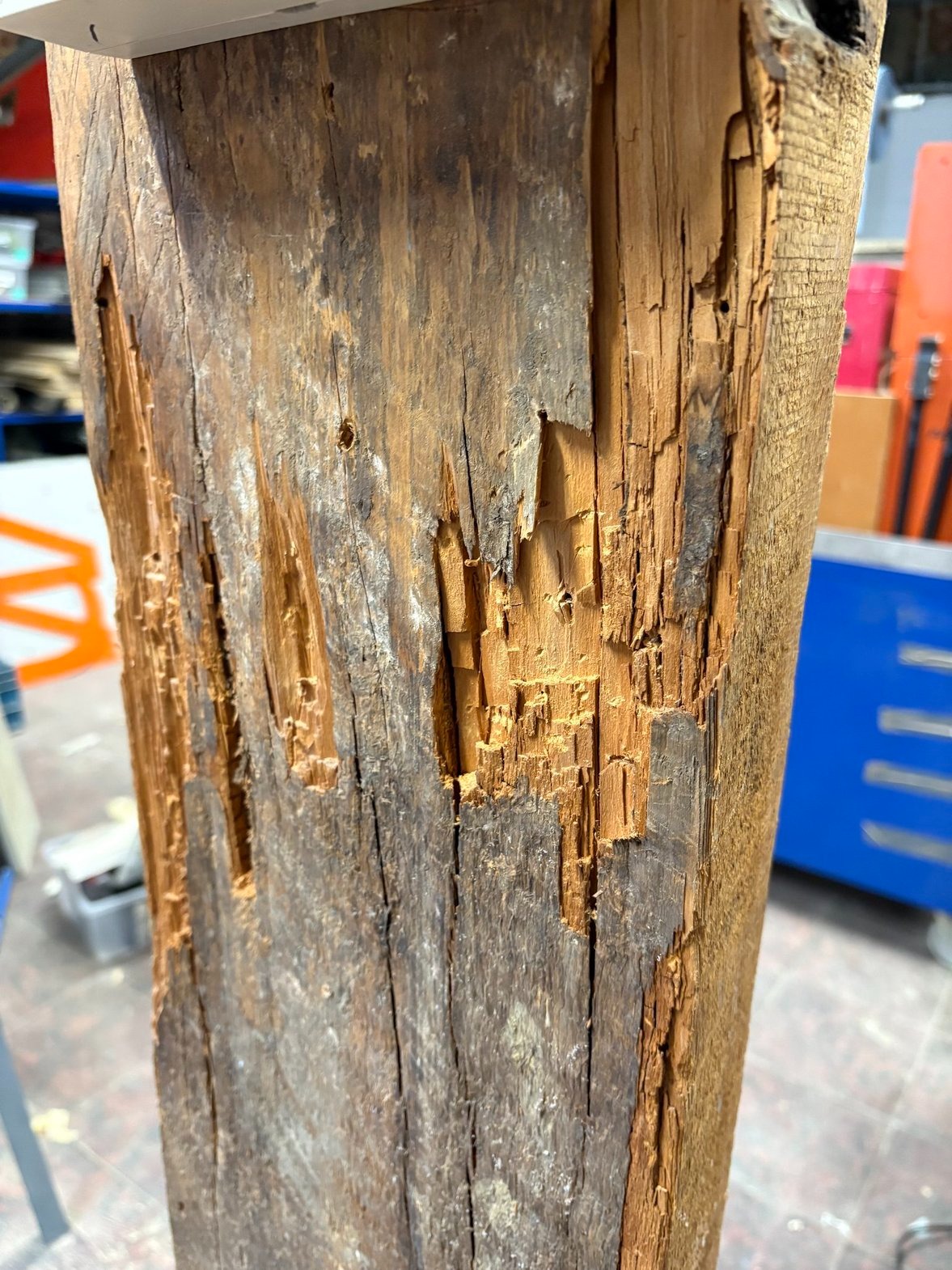 Remplacement de la poutre moisie de l'atelier par une nouvelle.